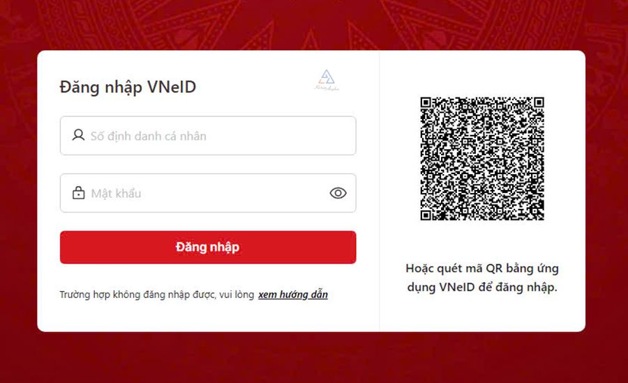 - Đăng nhập tài khoản VNeID mức 2 bằng cách nhập số định danh cá nhân (số CCCD) và mật khẩu hoặc mở ứng dụng VNeID trên điện thoại và thực hiện quét mã QR để đăng nhập.