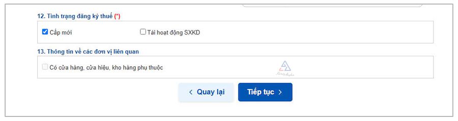 ➧ 12. Tình trạng đăng ký thuế: Chọn tình trạng cấp mới.