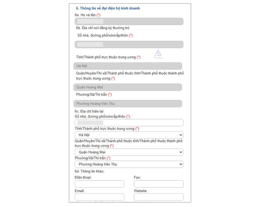 - Cách kê khai tương tự như mục 4 – Địa chỉ kinh doanh.