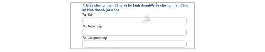 - Nếu NTT đã được cấp giấy phép hộ kinh doanh cá thể và vẫn đang hoạt động thì có thể nhập thông tin của giấy phép vào trường 7a, 7b, 7c tương ứng bên dưới.