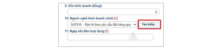 - NTT có thể chọn ngành nghề dự định kinh doanh hoặc nhấn “Tìm kiếm” để tìm kiếm ngành nghề phù hợp;