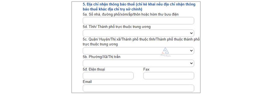 - NTT chỉ kê khai mục này nếu địa chỉ nhận thông báo thuế khác địa chỉ trụ sở chính (chính là địa chỉ kinh doanh khai ở mục 4);