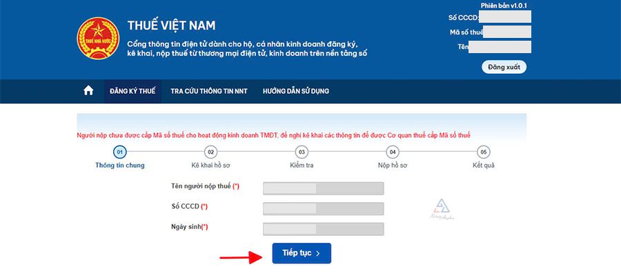 Sau khi nhập đầy đủ các thông tin như hướng dẫn ở trên, bạn chọn “Tiếp tục” và thực hiện tiếp bước 4 dưới đây.