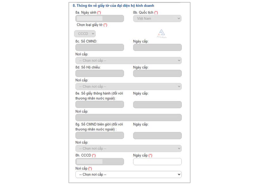 ➧ 8. Thông tin về giấy tờ của đại diện hộ kinh doanh