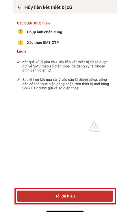 ➧ Bước 6: Chọn “Tôi đã hiểu” ➝ Quét khuôn mặt theo hướng dẫn;