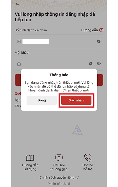 - Bước 4: Hệ thống sẽ hiển thị thông báo rằng bạn đang đăng nhập trên thiết bị mới, bạn nhấn chọn “Xác nhận”;