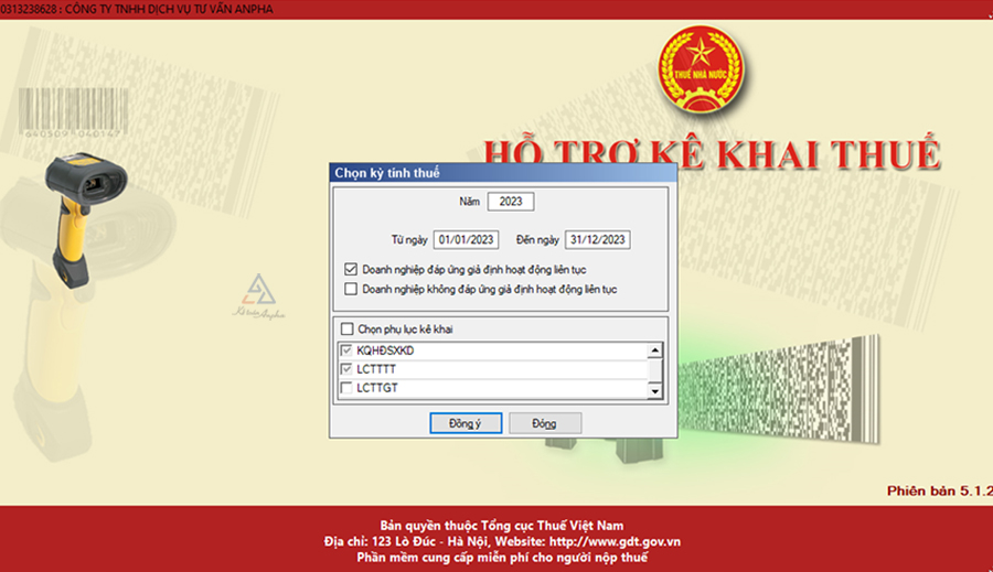 - Sau đó chọn “Niên độ tài chính”; phụ lục kê khai >> chọn “Đồng ý”;