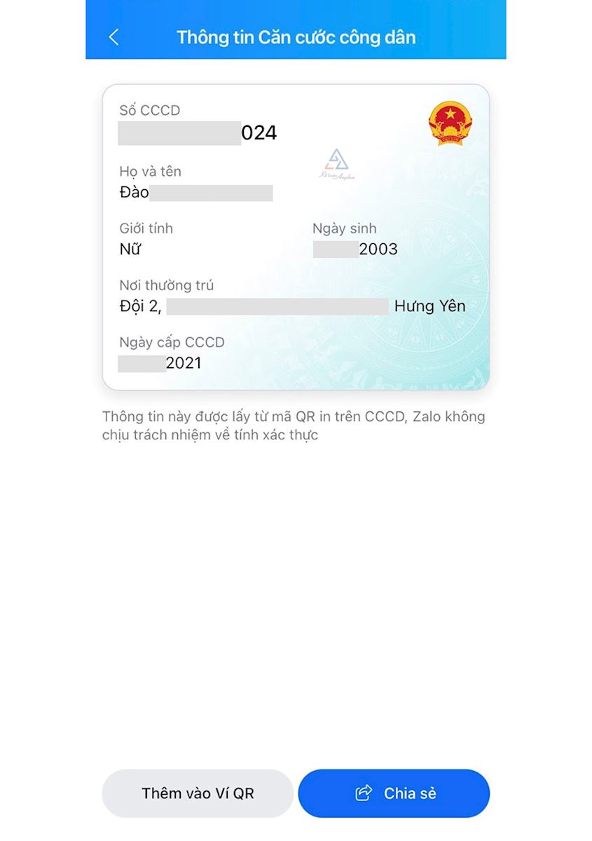 - Quét mã QR CCCD trên Zalo.