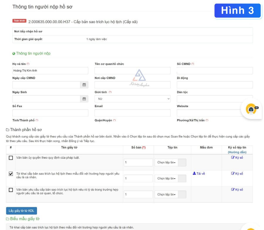 3. Nhận bản sao trích lục hộ tịch