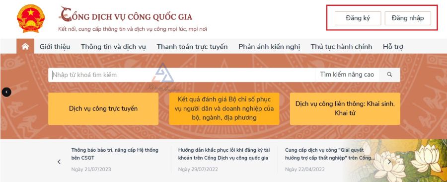 ➧ Bước 1: Truy cập Cổng dịch vụ công quốc gia hoặc Cổng dịch vụ công của tỉnh nơi cá nhân đăng ký hộ tịch;