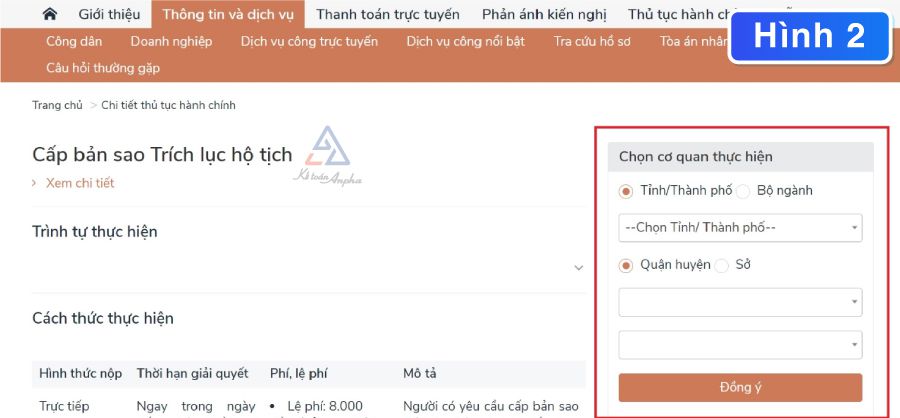 1. Nộp hồ sơ và lệ phí xin cấp bản sao trích lục hộ tịch online