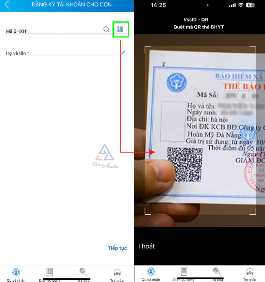 ➧ Cách 2: Quét mã QR trên thẻ BHYT