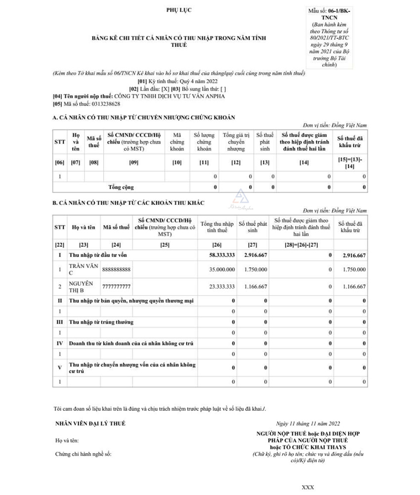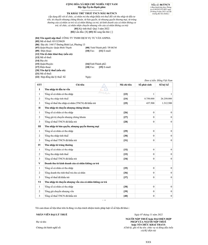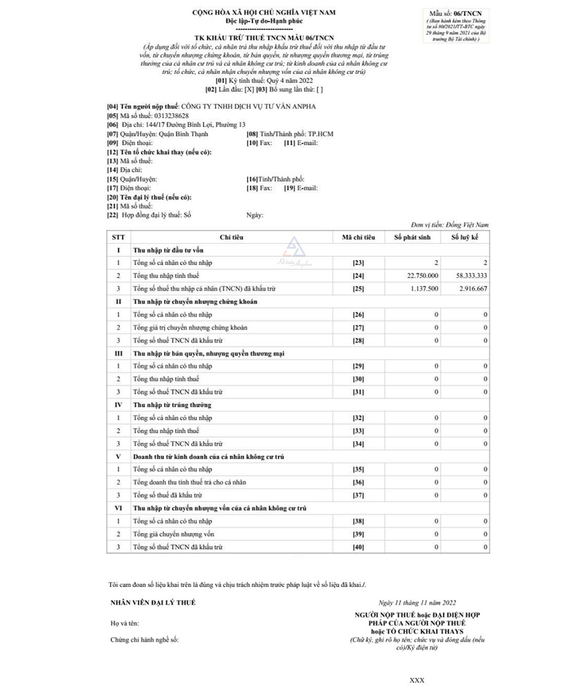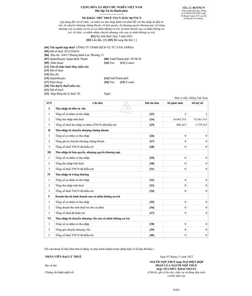 ➨ Tờ khai 06/TNCN quý 3/2022:
