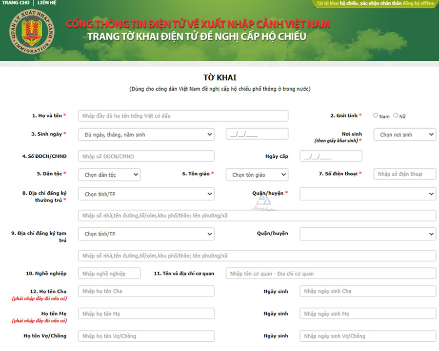 - Tờ khai đề nghị cấp hộ chiếu phổ thông ở trong nước;