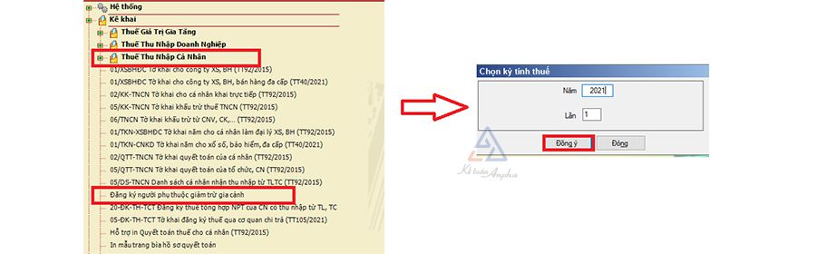 - Vào mục thuế “Thu nhập cá nhân”, chọn mục “Đăng ký người phụ thuộc giảm trừ gia cảnh”, sau đó chọn năm rồi bấm “Đồng ý”;