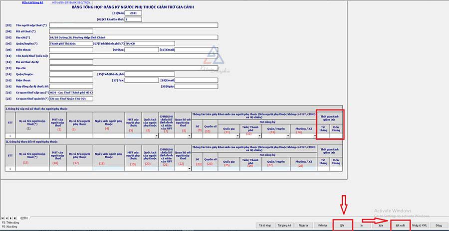 - Sau khi điền xong thông tin, bấm vào nút “Ghi” để ghi lại và kết xuất ra XML để nộp trên trang thuế điện tử.