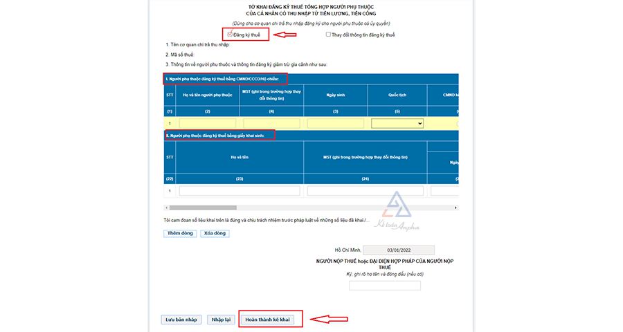 - Doanh nghiệp thực hiện đăng ký người phụ thuộc online trên trang thuế điện tử có thể làm theo 2 cách: