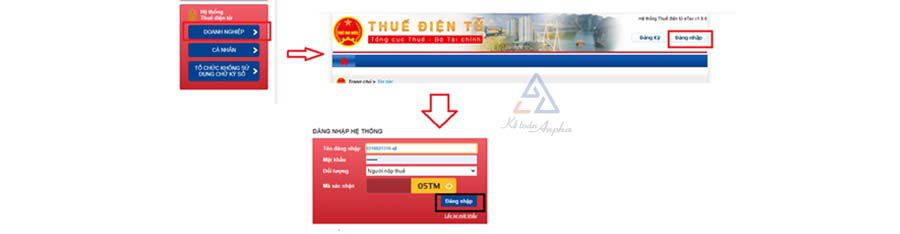 - Đăng nhập vào trang thuế điện tử theo thông tin đăng nhập của từng doanh nghiệp;