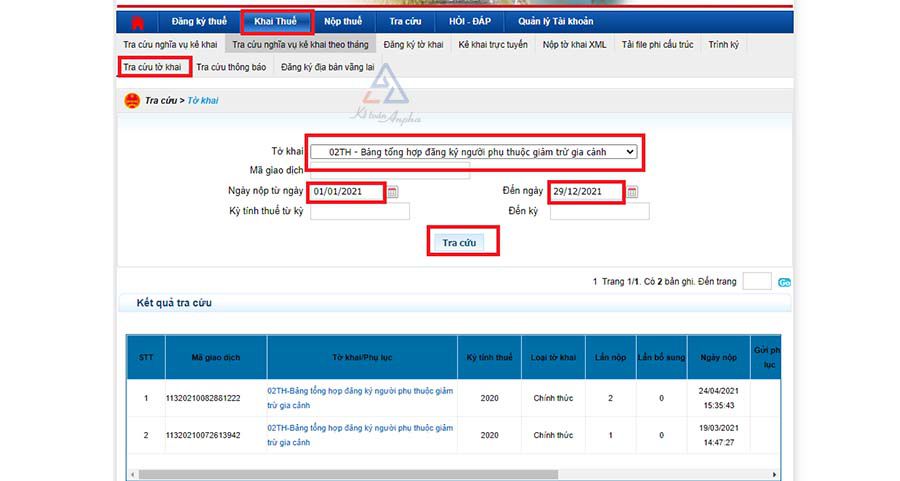 - Vào “Khai thuế”, rồi chọn “Tra cứu tờ khai”;
