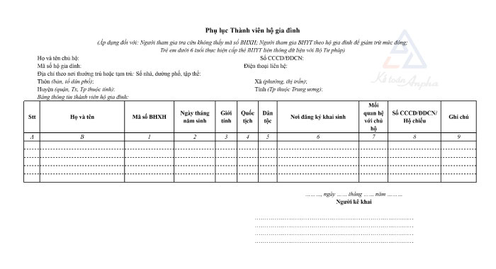 - Nếu NLĐ chưa từng tham gia BHXH, chưa có mã BHXH thì công ty phải khai thêm phụ lục thành viên hộ gia đình;
