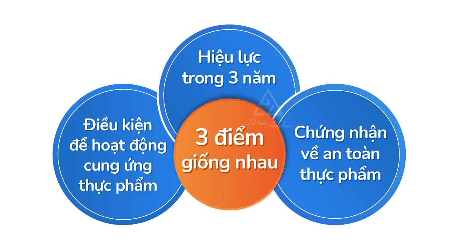 Nhìn chung, giấy chứng nhận VSATTP và chứng nhận ISO 22000 có những điểm tương đồng như: