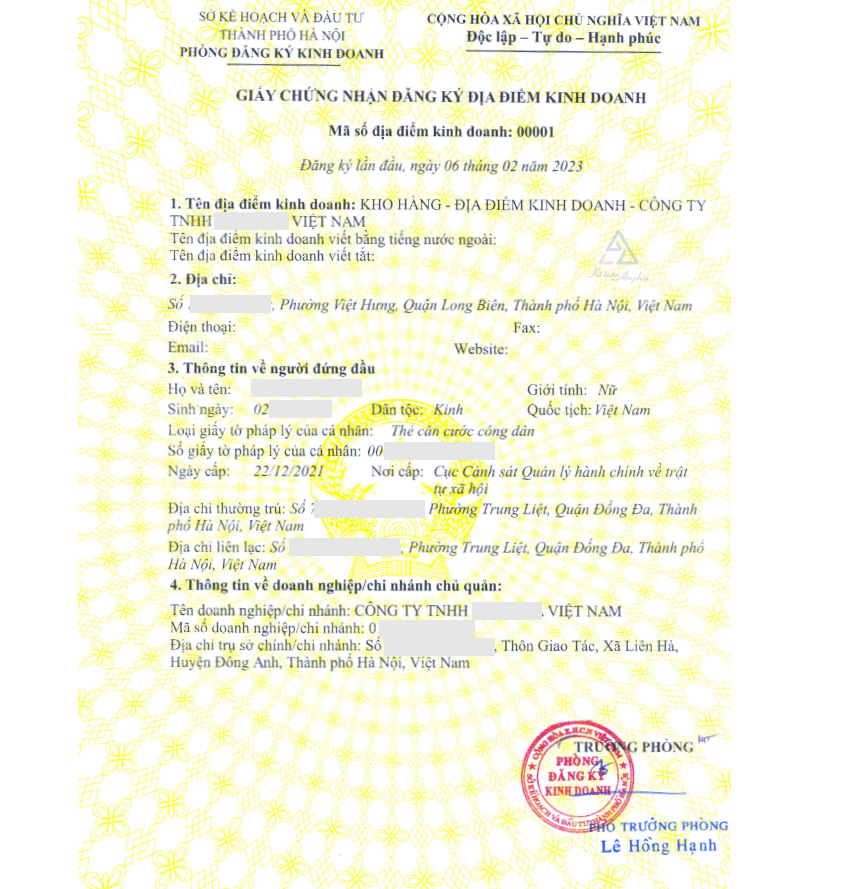 >> Xem thêm:Thủ tục đăng ký địa điểm kinh doanh.