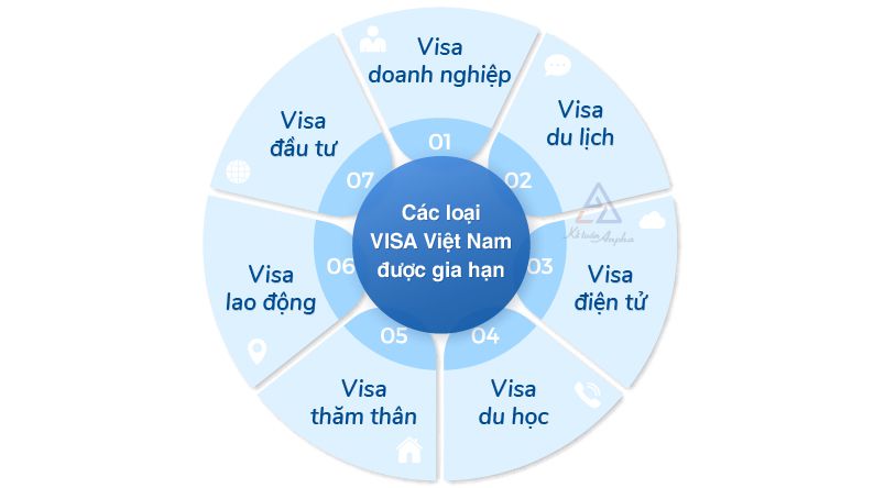 Theo quy định của pháp luật hiện nay, các loại visa/thị thực được phép gia hạn phổ biến tại Việt Nam bao gồm: