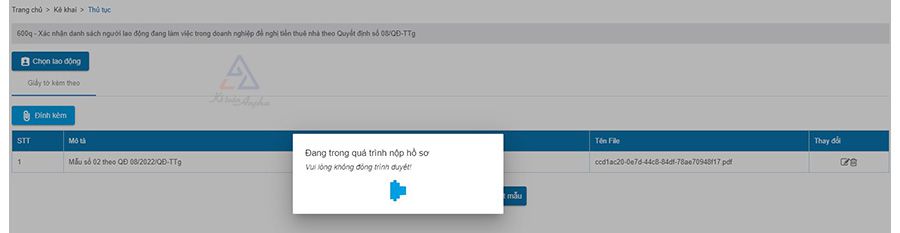 - Cách 1: Nộp hồ sơ giao dịch điện tử 600Q, đính kèm file danh sách người lao động đề nghị hỗ trợ tiền thuê nhà (mẫu 02). Lưu ý, file đính kèm là file đã ký số (ký bằng token);