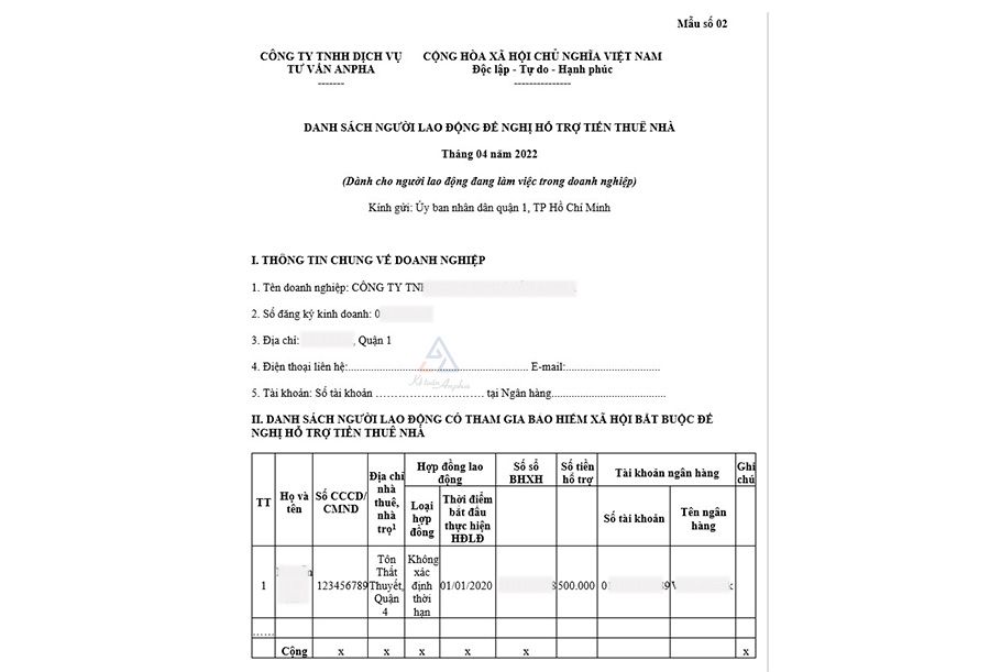 - Mẫu 02 – Danh sách người lao động đề nghị hỗ trợ tiền thuê nhà;