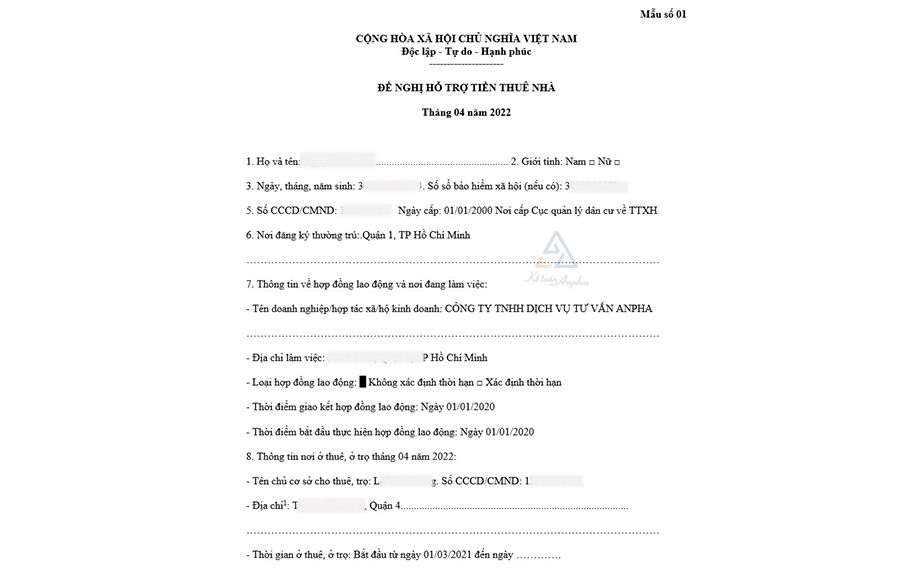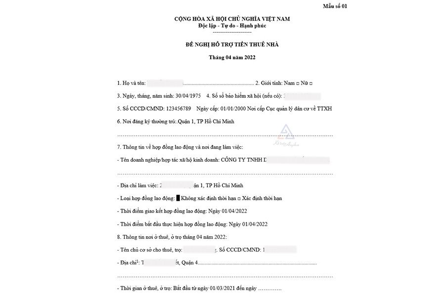 - Mẫu 01 – Đề nghị nhận hỗ trợ tiền thuê nhà;