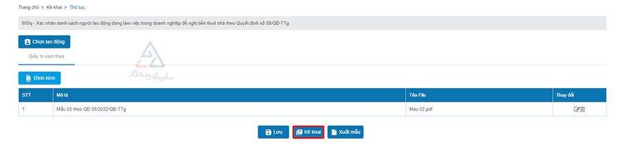 - Bước 4: Sau khi đã hoàn thành xong các bước ở trên, bạn chọn “Kê khai”;
