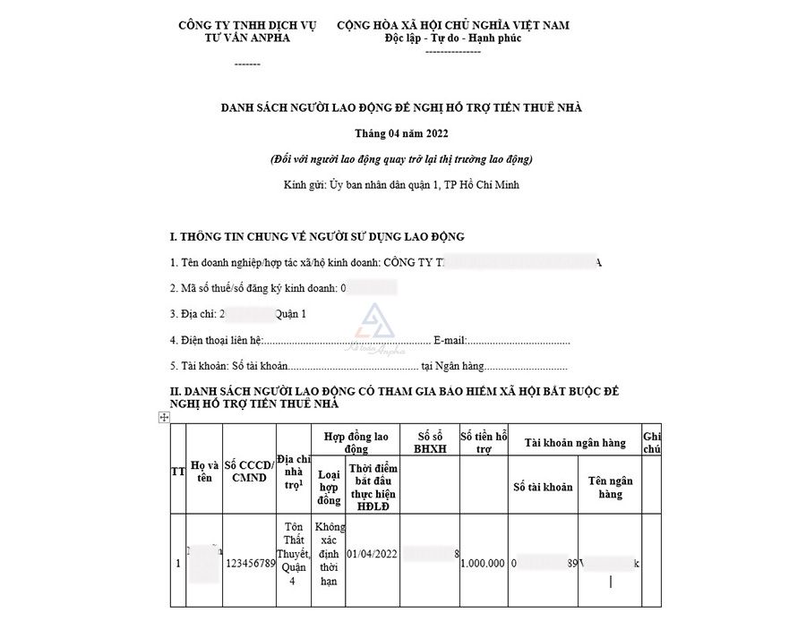 Thủ tục lập danh sách đề nghị hỗ trợ tiền thuê nhà, thuê trọ cho người lao động cũng khá đơn giản, bạn có thể thực hiện theo các bước sau: