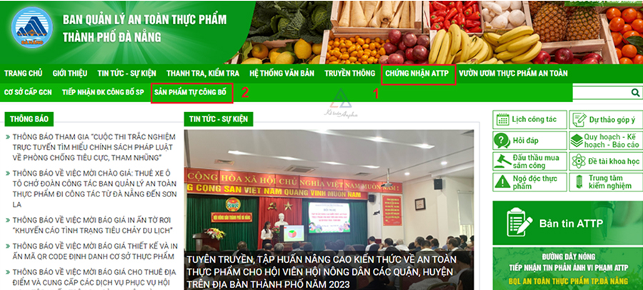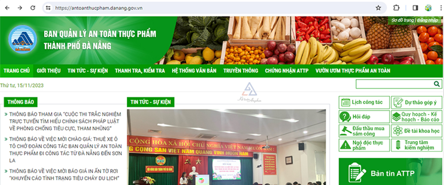 ➨ Bước 1: Truy cập vào website của Ban quản lý an toàn thực phẩm thành phố Đà Nẵng theo đường link https://antoanthucpham.danang.gov.vn/