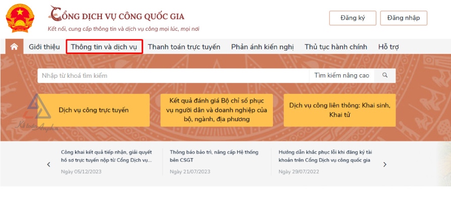 - Tra cứu tại Cổng dịch vụ công quốc gia;