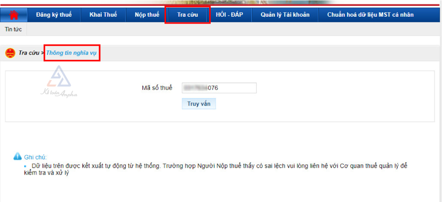 Bạn chọn tra cứu, sau đó chọn “Thông tin nghĩa vụ thuế” và “Truy vấn” theo MST doanh nghiệp đã thể hiện, số thuế còn nợ đến thời điểm truy cứu của doanh nghiệp sẽ được hiện ra. Bao gồm 2 mục: