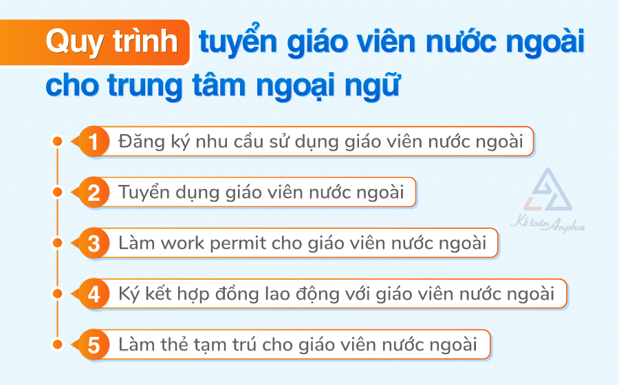 - Bước 3. Làm giấy phép lao động (work permit) cho giáo viên nước ngoài;