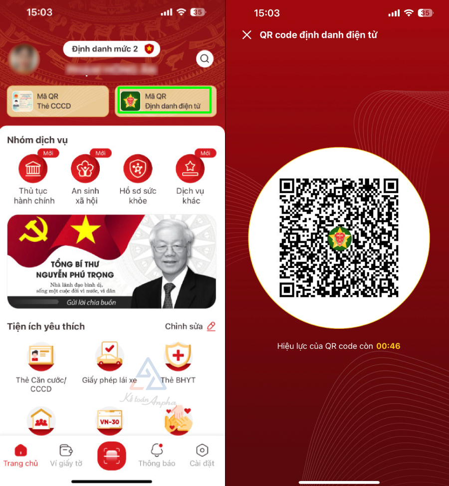 - Bước 2: Quay lại “Trang chủ” chọn “QR code định danh điện tử”;