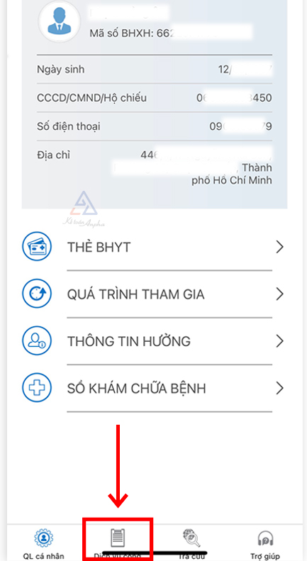 - Bước 1: Đăng nhập ứng dụng VssID bằng mã số BHXH & mật khẩu do cơ quan BHXH cấp >> tại trang “Quản lý cá nhân” chọn “Dịch vụ công”;